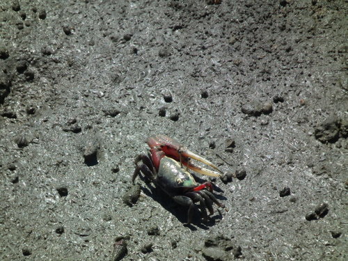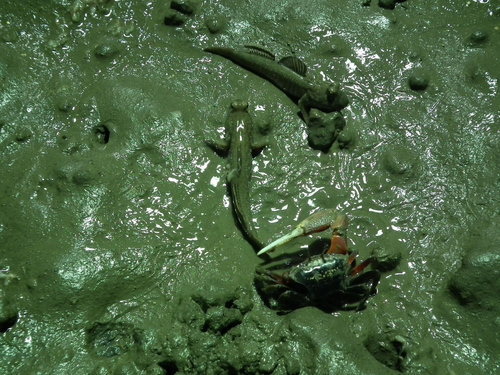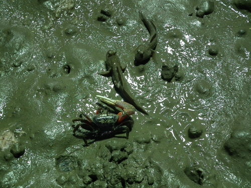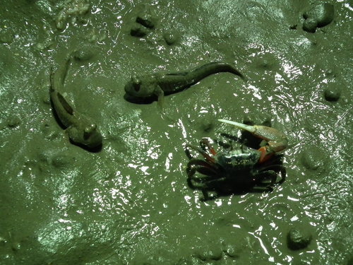 在大鵬灣跨海大橋邊觀察招潮蟹和彈塗魚